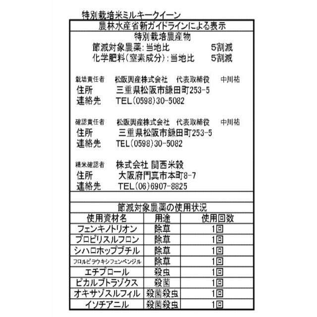 三重県産 ミルキークイーン。農薬を控えた栽培方法により、安心してお召し上がりいただけます。