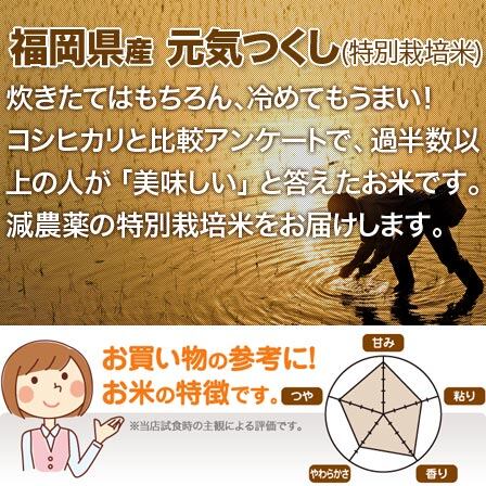冷めても旨い!福岡県産米の信頼と真心の目印【めし丸くん】「福岡県 元気つくし 特別栽培米」。